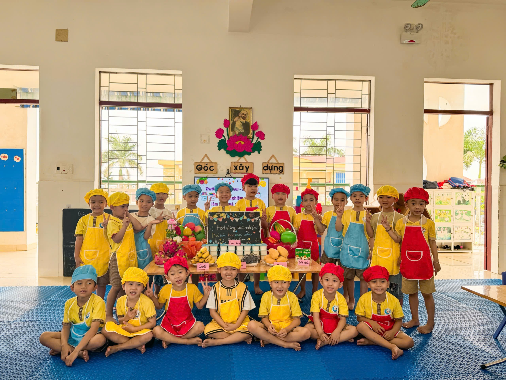 Chào các bạn , hôm nay lớp 5TA3 chúng mình sẽ cùng nhau biến hình thành những "đầu bếp nhí" để thực hiện một món ăn vô cùng hấp dẫn, thanh mát, bổ dưỡng và cực kỳ phù hợp với thời tiết nắng nóng đầu hè, đó là món : Sữa chua dầm hoa quả sắc màu cho chúng mình?